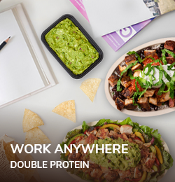 2x Guacamole | Sofritas Plant-Based Protein | Salad Lettuce | Cilantro-Lime Brown Rice | Fajita Veggies | Shredded Cheese | Taco Lettuce | Fresh Tomato Salsa | Roasted-Chili Corn Salsa