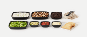 2x Chicken | Steak | 2x White Rice | 2x Black Beans | Salad Lettuce | Fajita Veggies |Sour Cream | Taco Lettuce | Roasted Chili-Corn Salsa | 2x Fresh Tomato Salsa Chili Salsa | 2x Soft Flour Tortillas
